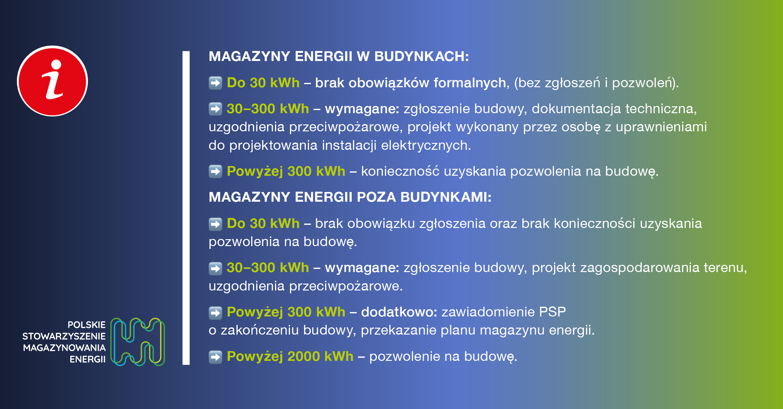 300–2000 kWh – dodatkowo obowiązek zawiadomienia Państwowej Straży Pożarnej o zakończeniu budowy wraz z planem magazynu,