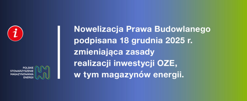 Polskie Stowarzyszenie Magazynowania Energii PSME aktywnie uczestniczyło w pracach nad nowelizacją na każdym etapie procesu legislacyjnego – od konsultacji i opiniowania, przez dialog z administracją publiczną, po prace parlamentarne. Podpisanie ustawy to ważny kamień milowy i jednocześnie duży sukces całej branży, która po raz pierwszy doczekała się jednoznacznych regulacji dotyczących magazynów energii w Prawie budowlanym.