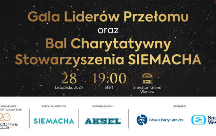 Już mniej niż za tydzień, 28 listopada, w hotelu Sheraton Grand Warsaw odbędzie się wyjątkowe wydarzenie – Gala Liderów Przełomu Executive Club połączona z Balem Charytatywnym Stowarzyszenia SIEMACHA. To wieczór, który połączy celebrację osiągnięć biznesowych [...]