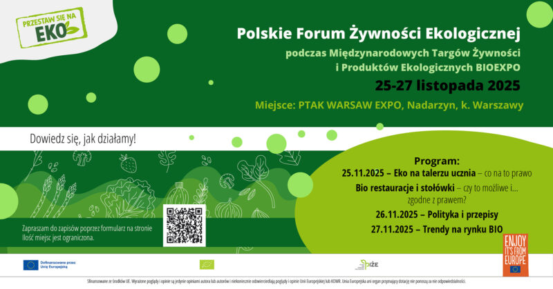 PIŻE jest również organizatorem Polskiego Forum Żywności Ekologicznej, podczas którego eksperci, przedstawiciele administracji i naukowcy omówią najważniejsze wyzwania stojące przed branżą BIO w Polsce.